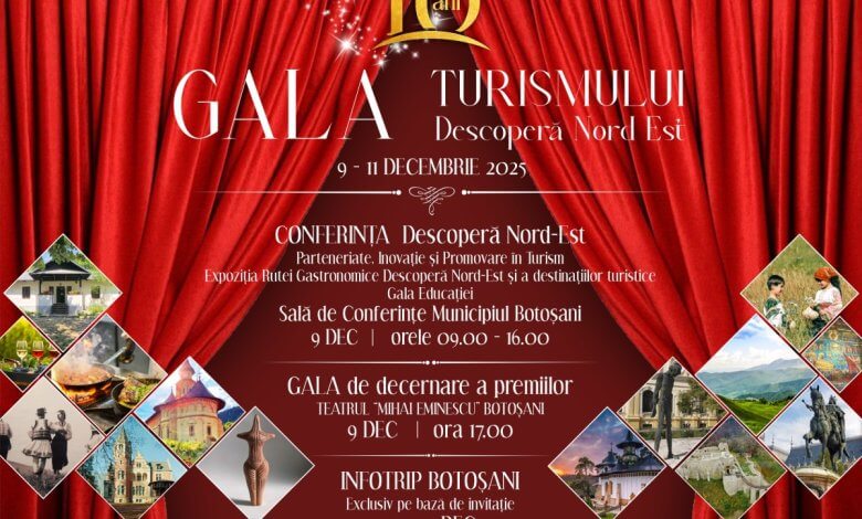 Seara de gală se va desfășura la Teatrul „Mihai Eminescu”, unde vor fi acordate premiile de excelență în turism. Evenimentul va fi completat de un spectacol artistic aniversar și un cocktail oferit invitaților.