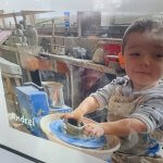 În timp ce roata electrică începe să se învârtă, lutul se ridică, se lărgește, se subțiază. Publicul urmărește în tăcere.